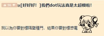 → rockmanalpha: 引爆DOT嗎 好的我弄一個跟DOT87%像的但不叫DOT 01/11 14:23