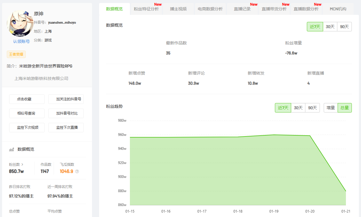 → q251425: 推測掉粉是說微博或B站或抖音吧 01/22 19:47