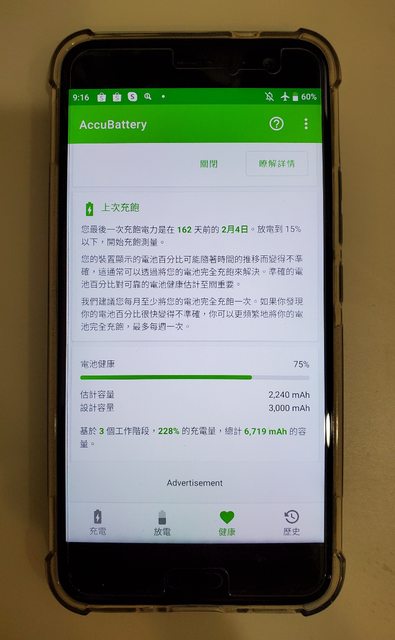 正常使用 電池續航力有減弱 電池健康度75%