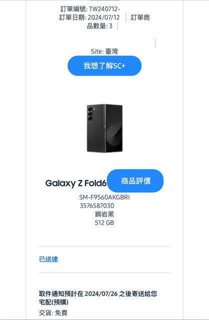 欲售物品:全新 Galaxy Z Fold6 512GB 鋼岩黑色