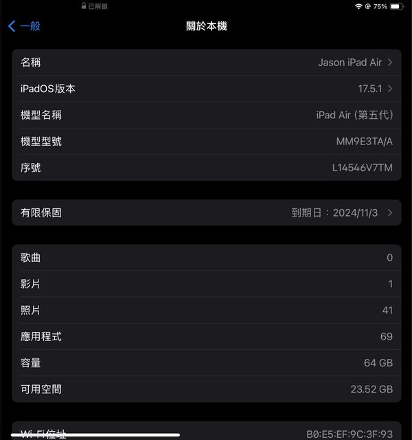 欲售物品:ipad air 5 藍 保內