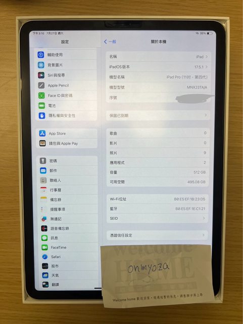 標題[賣/台北/皆可] iPad Pro 11 M2 512g WiFi