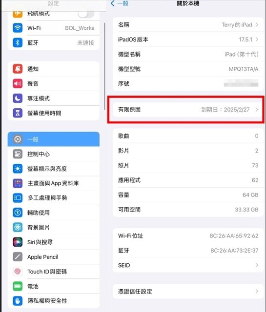 欲售物品:iPad 10th WiFi 64G 藍