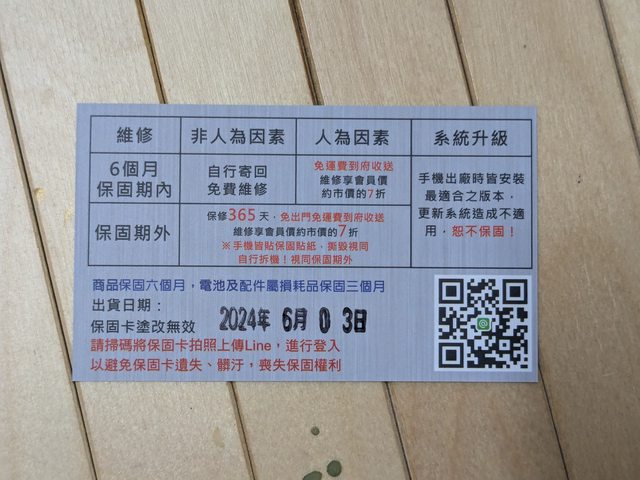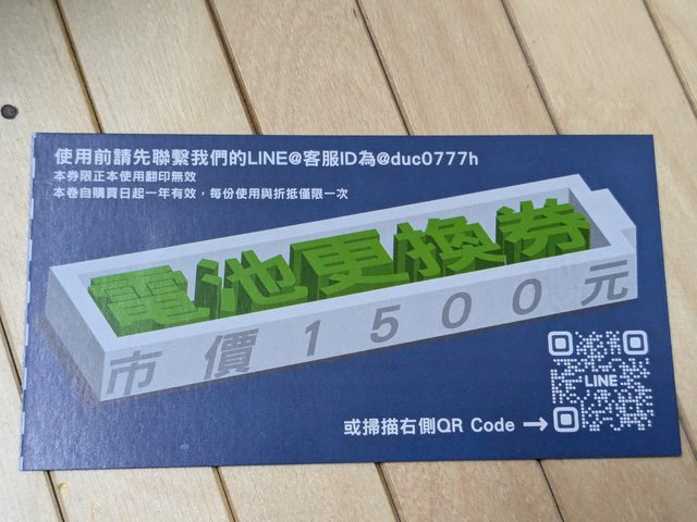 副廠電池更換券,維修站說一年內可免費更換