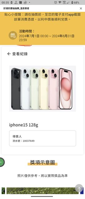 購買日期:7/30中獎 8/12收到