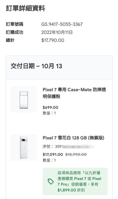 購入價格:17091 (Pixel 6使用者折價券)