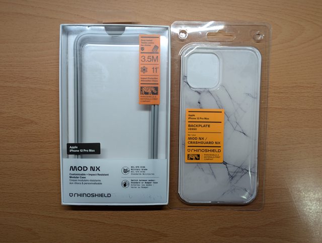 盒裝內含:犀牛盾 Mod NX 淺灰色邊框 + 白色大理石背版