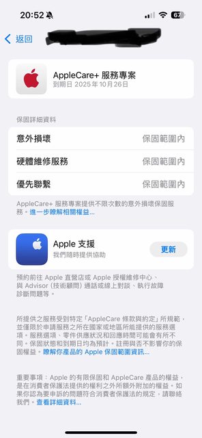 保固日期:apple care+ 2025/10/26