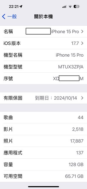 目前是IOS 17.7版本,螢幕、相機、喇叭、麥克風等功能使用一切均正常。