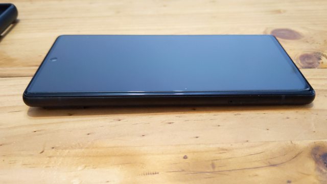現行的保護貼有裂痕,不過還附上一張備用的、現行保護殼是犀牛盾,另有一個備用的殼