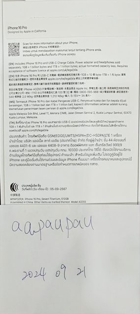 欲售物品:IPHONE 16 PRO 512G 沙漠金
