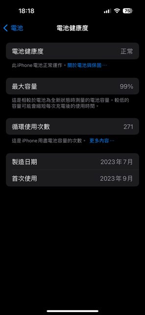 電池健康度99,循環次數271,已裝保護殼貼,外觀無傷無送修紀錄