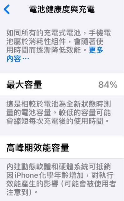 功能皆正常/電池健康度84%