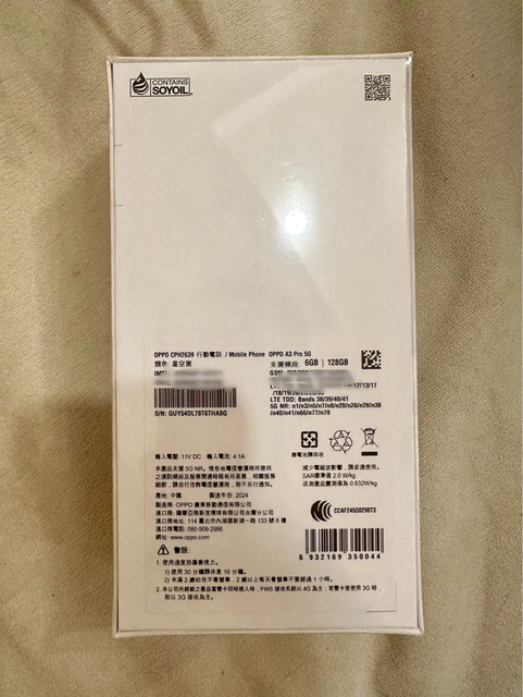 盒裝內含:手機 TYPEC充電線、插頭、SIM卡卡針、保護套