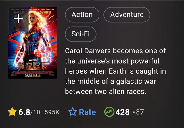 → Reze : 回升到快9了,驚奇隊長2也是這樣,一開始有很多酸 11/11 16:23