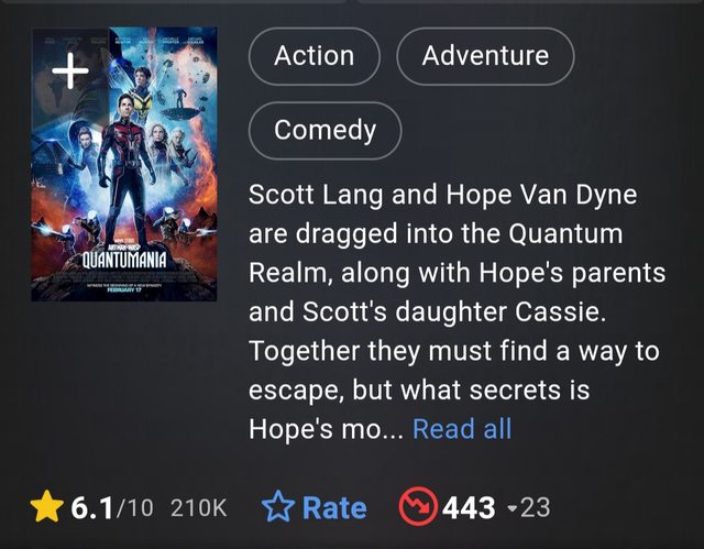 推 yuchueh0305 : 蟻人3還算有娛樂到,這部真的不太行! 11/11 18:06