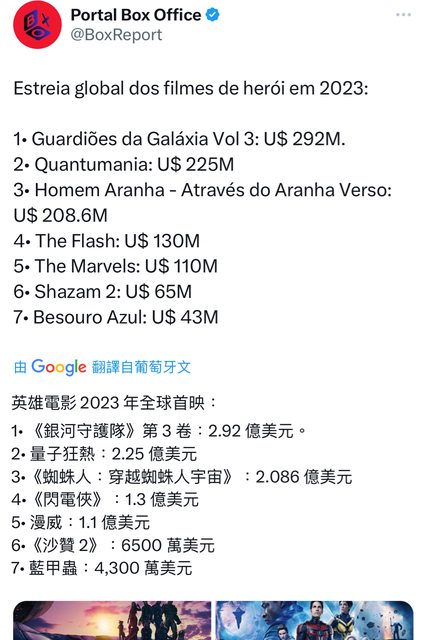 推 cashman402 : 恭喜漫威~希望再創"佳績"哈哈 11/13 17:20