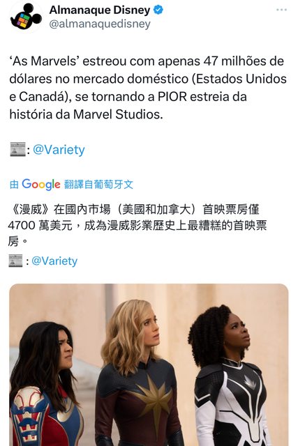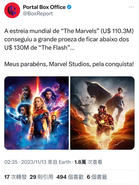 推 nobady98 : 不是有人說比閃電俠低的話,要去看驚奇2幫忙救票房 11/13 08:05