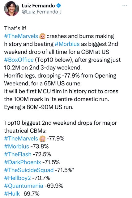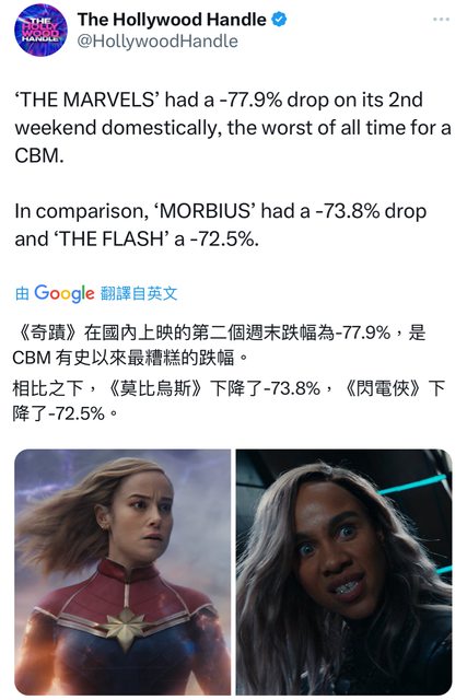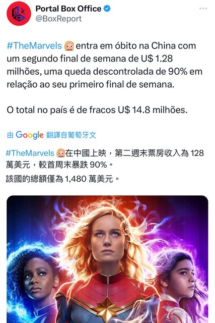 → holyseraph : 迪士尼已經沒空管驚奇隊長2第三週跌幅如何了 11/20 11:55