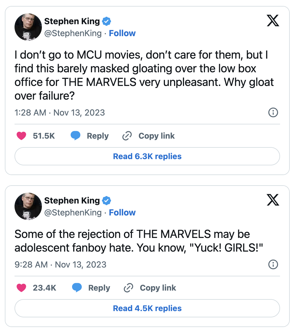 → KingKingCold: 也是老白男 結果這兩部也被砲翻 也有人喜聞樂見漫威 11/20 17:01