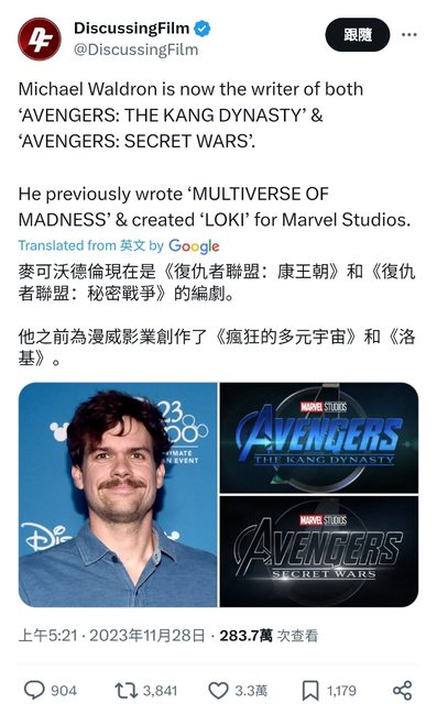 CavendishJr : 他在洛基是主創,沒寫過幾集劇本,下來寫就是奇異2 11/28 10:38