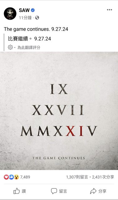 推 shengchiu303: 會翻成奪魂鋸習嗎 12/12 08:29