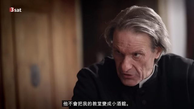 他還找到管風琴手 Franz成立合唱團、不但要唱鄉民熟悉的德語歌曲更要拉進更多人,包括小酒館裡那些酒酣耳熱的農民男女、即使平日也沒在上教堂而受人側目、Joseph全要包納進來同台合唱這才是「神愛世人」海納百川呀!只是信仰之道一路順遂時你輕鬆舒服,好景不常風雲變色時才真考驗你的堅定:以德語講道的開明神父很快被調走了,接替他的新神父 Pfarrer Nöstler 卻是鐵板一塊捍衛傳統雷厲風行的保守派。「一切都要回歸拉丁語」才是天主教正統,面對鄉民「須規訓管束而非隨之流俗」,甚至面對不信教的鄉民「墮落罪人須擋在門外」以免污了教會的聖潔!