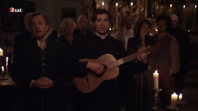 史實創作《平安夜》的是奧地利神父 Joseph Mohr,他生於 1792 寫這首歌時也才 26 歲,當然要找奧地利年輕有為雙眼發光的帥男演員來飾演!史實《平安夜》創作緣起可考證的內容並不多,甚至有一百多年間樂界普遍以為這是海頓或莫札特等古典大師之作 XD 直到 1995 年有人找到 Joseph Mohr手稿方能確認他才是原作。而史實所能知道的,不外就是這個薩爾茲堡以北腳程四小時的小鎮 Oberndorf bei Salzburg 連年受洪災所苦、1816《慕尼黑條約》更重劃他們邊界致鄉民社群無所適從... 此時從薩爾茲堡被派任來此的年輕神父 Joseph 亟須擁抱人們撫慰人心呀。