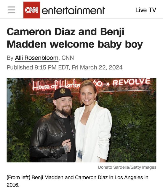 標題[新聞] 美國女星卡麥蓉狄亞喜迎男嬰 升格二寶媽