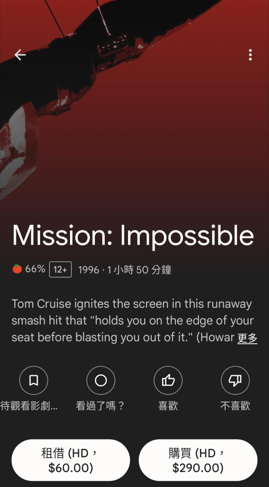 → ivanchang : HBO go有完整整套不可能任務可看喔 04/20 23:08