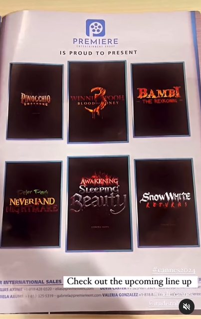 新聞網址:https://www.toy-people.com/?p=89947 原標題: 維尼宇宙還在擴張!《血與蜜》團隊證實《白雪公主》《睡美人》恐怖版電影也在籌備中 2024-05-17 11:26:27 恐怖版《小熊維尼》續集《小熊維尼 2:嗜血維尼》(Winnie the Pooh: Blood and Honey II)今日起在台上映。日前官方才宣布一口氣打造多部魔改作品,並串聯起《小熊 宇宙:怪物集結》(Poohniverse:Monsters Assemble)的電影,而今日稍早官方透過 IG 短片 公布在坎城影展市場的場刊,赫然發現有更多「噩夢」正在醞釀。 除了已經公布的《血與蜜》第三集、《小鹿斑比:大清算》(Bambi:The Reckoning)、 《彼得潘之噩夢不落帝國》(Peter Pan’s Neverland Nightmare)、《皮諾丘大暴走》 (Pinocchio Unstrung)外,場刊上也能看到《睡美人》恐怖版《Awaking Sleeping Beauty》與《白雪公主》恐怖版《Snow White Returns》改編電影,證實這個恐怖童話宇 宙仍在不斷擴張。這兩者都早已是經過無數改編的知名童話,因此會「慘遭毒手」並不令 人意外。 https://i.imgur.com/ca1C339.png