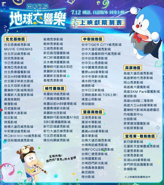 標題[情報] 《哆啦A夢:大雄的地球交響樂》戲院列表