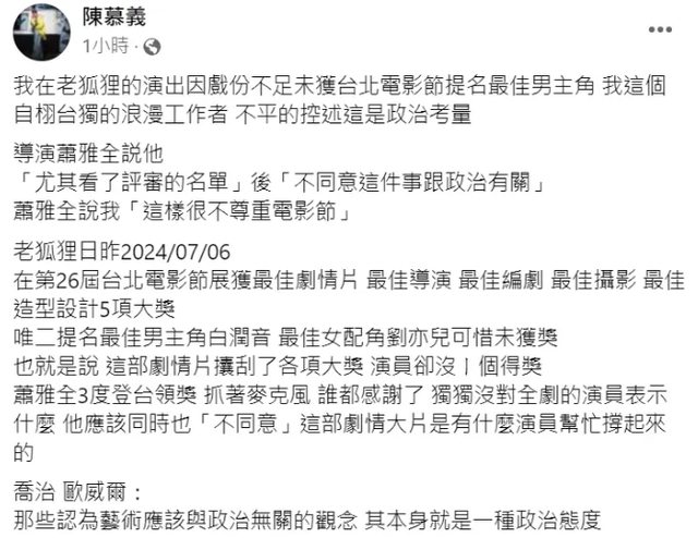 推 sigrid0331 : 要怪就該怪台北電影獎通知別人不通知他要不要移獎項 07/08 15:00