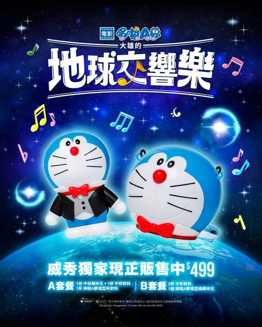 今天(7/14)早上9:58威秀影城粉專最新消息發佈說這次哆啦A夢新電影的地球交響樂造型杯