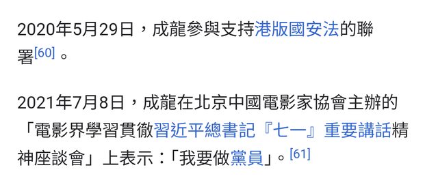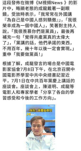 成龍有宣示效忠過台灣人或民進黨嗎?