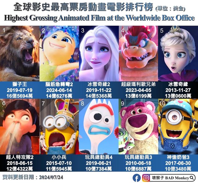 推 premiumGT : 冰雪2票房其實沒有比上集高很多 腦筋2是整個暴增07/25 12:48