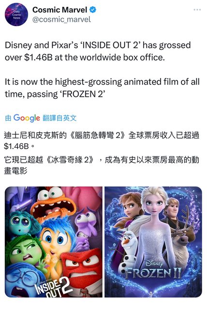 推 freaky0908 : Inside out 2的票房真的非常驚奇07/25 13:04