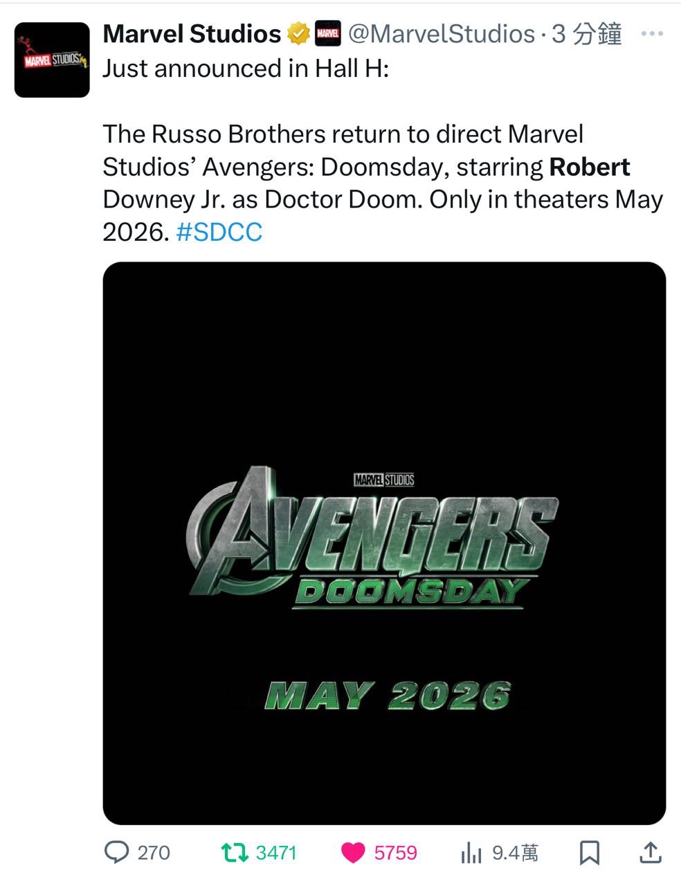 → mnb1234 : 下一部復仇者聯盟 秘密戰爭 和 doomday 07/28 10:13