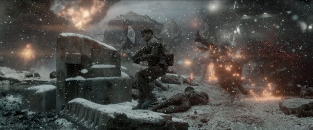 (2) 戰陣戲,我仍覺戰陣對壘「槍林彈雨」非查所長,但導剪版至少「限制級」有其血腥殘酷,雖然「一群農民訓練準備不畏犧牲」終成功退敵?對我來說仍很唯心主義沒啥物質說服力,但至少「反抗不是請客吃飯」而是拋頭灑血傷亡慘重,這點現實殘酷有做出來令人驚懼,尤其平日「每人拿一支掃把」或「每人發一支步槍」的熱血喊話 (!)都值得在此品味思考。還有無畏艦 King's Gaze的入侵破壞,頗有星戰愛玩的「死星」影子,本片打到血肉汗水聲嘶力竭毀天滅地,是比千年鷹飛出配福伯一聲「咿~哈~」有重量得多。不過這類「毀天滅地」近年我仍較愛《黑寡婦》。