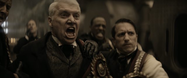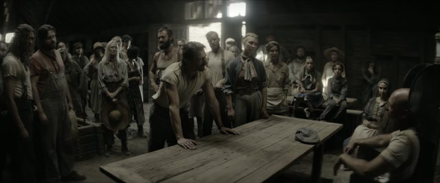 (3) 談到戰陣戲就不得不提最令我頭痛的「萬歲衝鋒」,彷彿槍林彈雨不須掩蔽與戰術、只要登高一呼大聲喊殺亂槍掃射衝鋒就對了 XD 只是這種衝鋒處理放在當下戰陣令人翻白眼之餘、放在娓娓道來的「回憶戲份」慢動作處理竟別有風味,在這些各有創傷的回憶戲中查導那「隨便截圖都能當桌面」的美術細節與史詩時刻都油然而生!結果看完六個小時我對「農民起義」雖感血腥殘酷卻只覺得天馬行空看看就好、真念念不忘的還是這些回憶戲中「星際末日」的歷史現實:正如西方世界從古羅馬到基督教到殖民帝國、難道永遠有個「帝國」高傲凝視無情踩踏征服一切嗎?