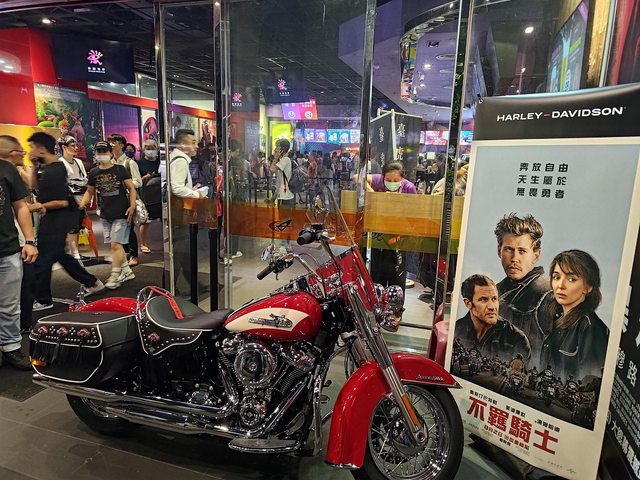 特映還特別放了台帥氣哈雷機車可以合照,長春國賓A廳的銀幕小而且高低間距非常糟糕,很容易被前面擋住,唯一值得稱讚音響效果不錯有呈現出重機由後往前騎去的聲音變化