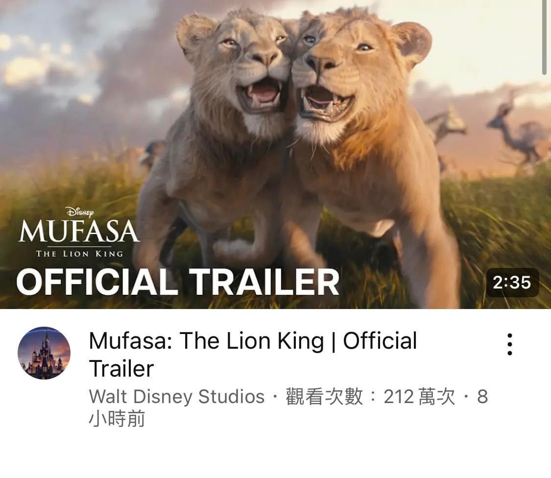 → pupu20317 : 不對,第一部預告就說木法沙沒有皇家血統了XD 08/10 21:36