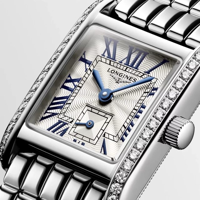 嵌38顆鑽石總重約0.456克拉,12萬2,300元。圖/Longines提供