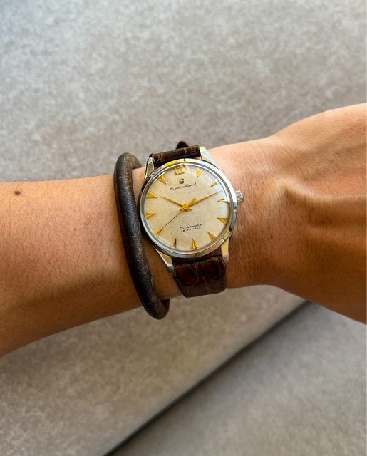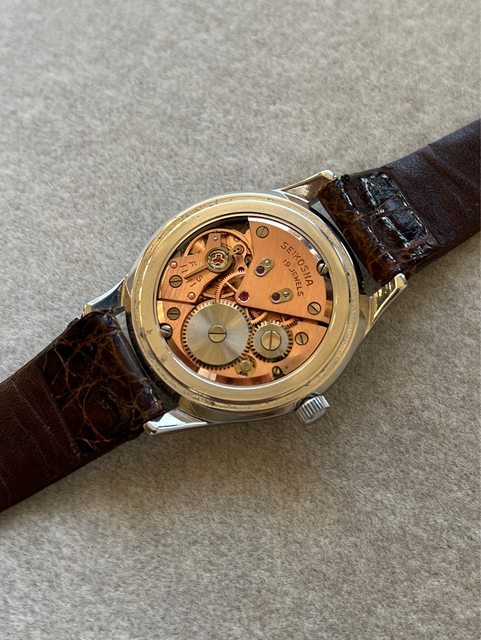 2. Seiko marvel 1960年代老錶,19顆避震寶石版本,搭配紅銅色機芯,一般17顆寶石是