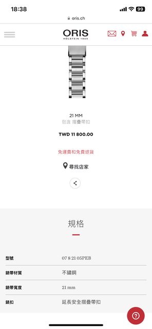 標題[買錶] 徵ORIS aquis 21mm 不鏽鋼錶帶