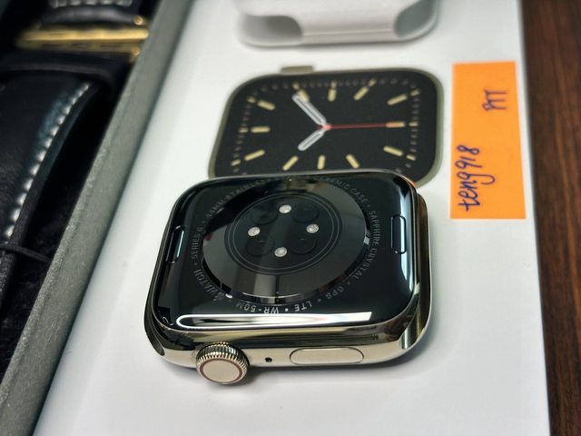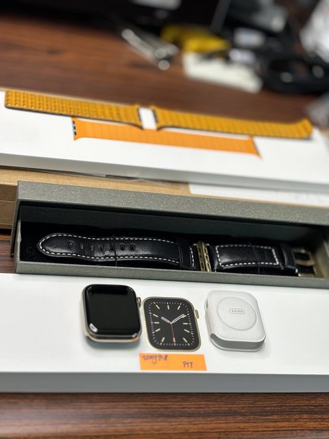 名稱:Apple Watch S6 44mm 金色不鏽鋼+原廠磁吸錶帶+真皮黑錶帶