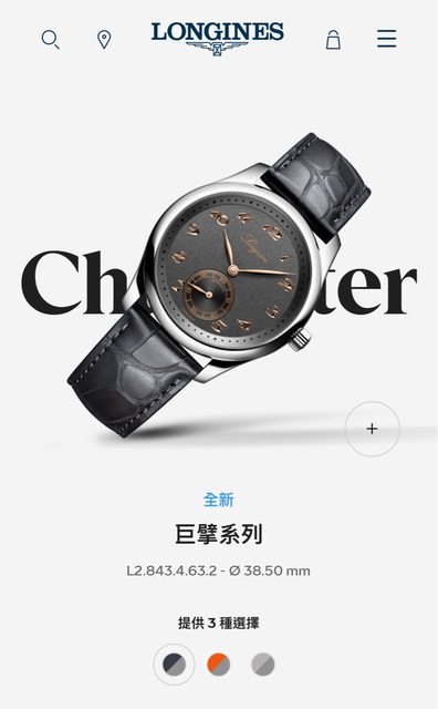 噴砂面盤很好看,搭配粉色柳葉針(個人覺得看起來偏金),搭配著草寫的Longines英文