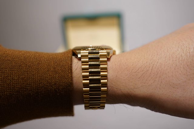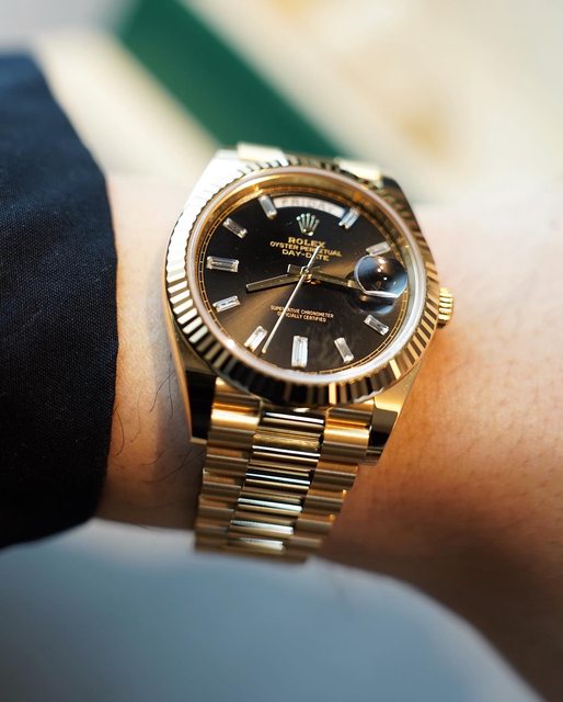 我實在是太喜歡這部電影,前前後後應該看了有30次,每次看到這個橋段目光總是會被他佩 戴的手錶吸引走,金錶原本給我的印象都是年紀偏大或是土豪,沒想到這隻金錶搭配上正裝 也能給人一種既優雅又帶一點gangster的感覺,完美點綴出查理在這部電影中扮演的黑幫紳 士風格。 接下來來聊聊今天的主角:Rolex day date 228238。 https://i.imgur.com/YD5w02Y.jpg