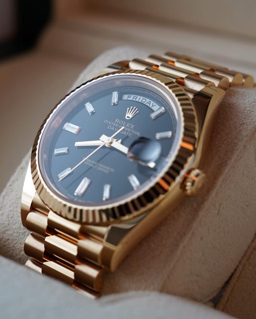 最近事情太多拖到現在才有時間發XD 期盼這隻好久了,一直沒在二手市場看到有人丟出來,跑AD問也只是被塞官方說詞 直到上個月喜獲麟兒,下定決心入手一隻跟兒子同年同月出廠的day date,等兒子長大再傳 給他當傳家寶。 最初被這隻燒到是看了一部電影叫The Gentleman,中文翻作紳士追殺令。劇中查理佩戴一 隻黑面18k金錶: https://i.imgur.com/uRP7qhw.jpg