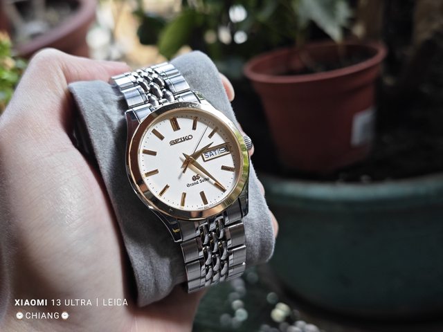 (備註)錶圈為18K有著切割紋路,白色的面盤有點蛋殼的磨砂質感,再搭配GS經典的劍